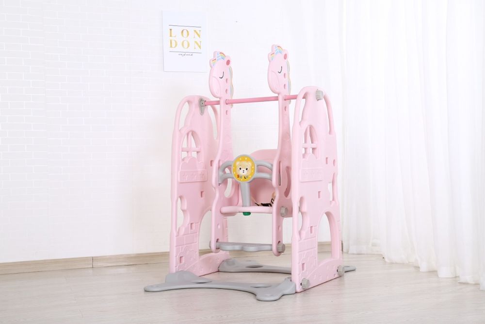 Сиденье качели оборудовано ручкой, чтобы ваш малыш не упал, а также удобной подножкой.